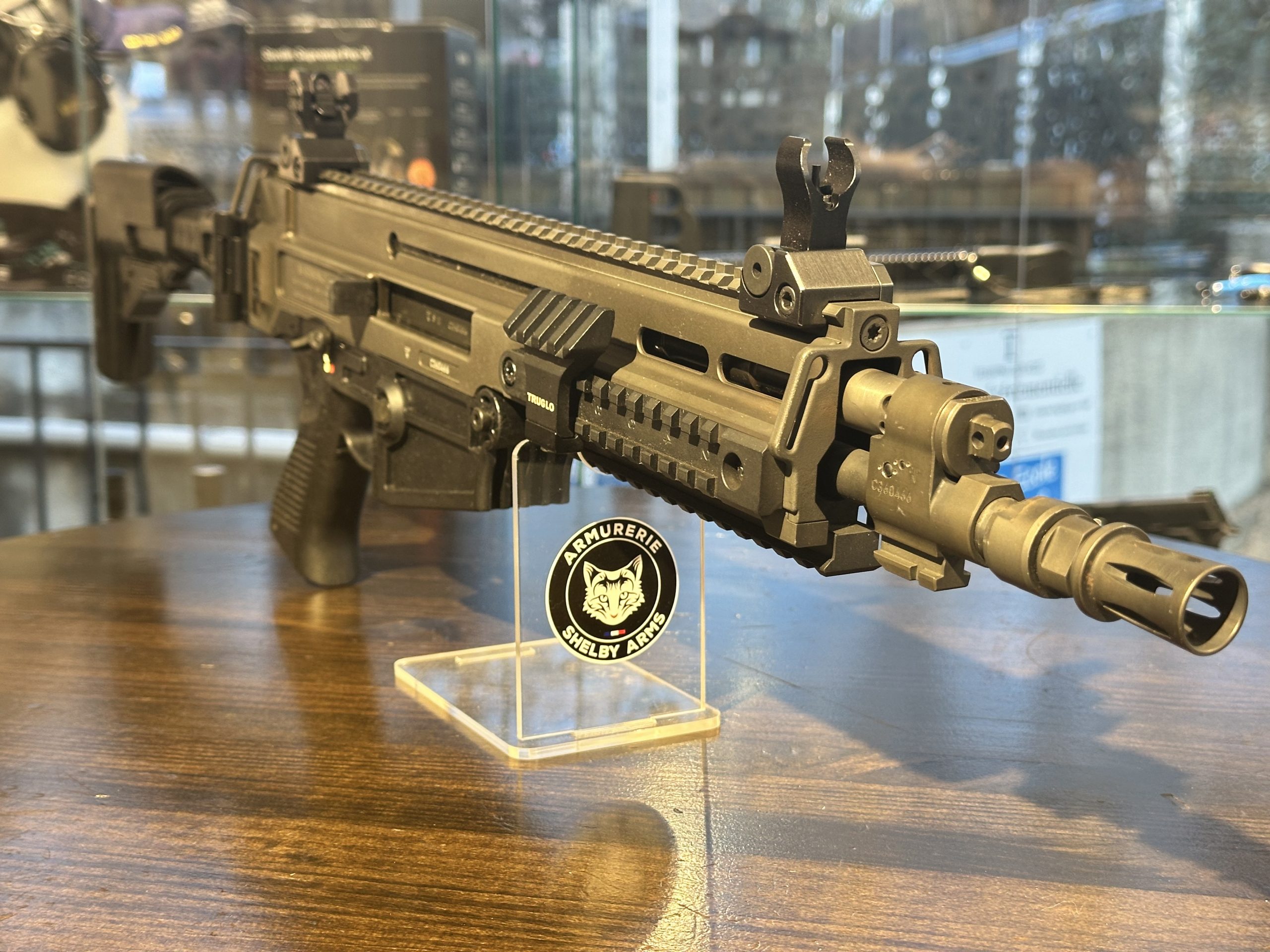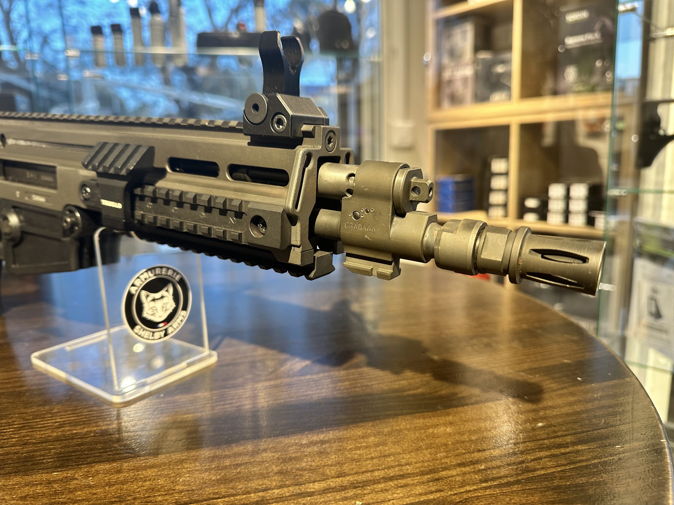 Ce fusil d’assaut est fabriqué en acier (culasse/canon), alliage léger (carcasse) et matériaux composites (monture et canon) et fonctionne par piston et verrou rotatif.