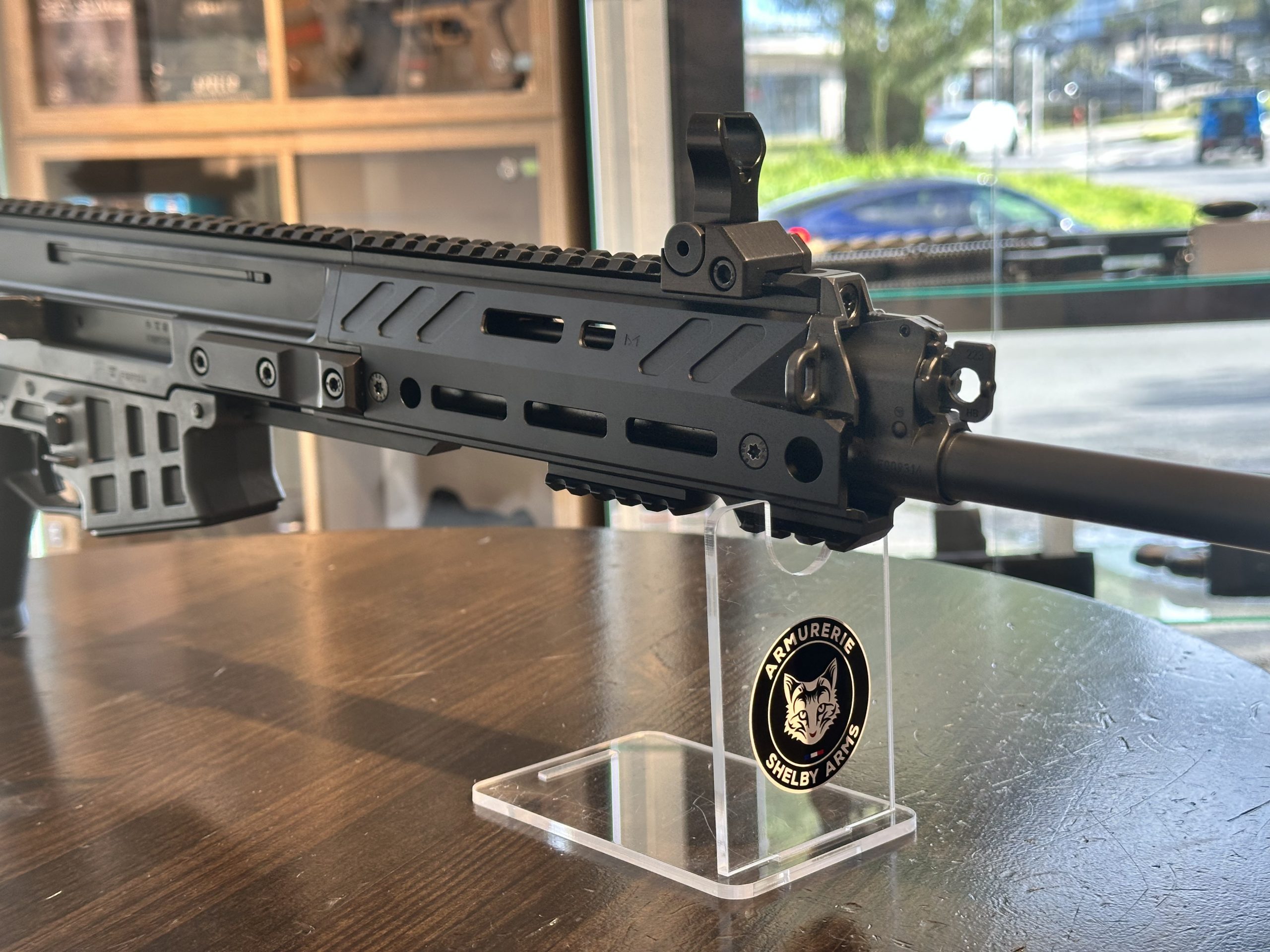 L’undercut retravaillé sous le pontet permet une prise plus haute sur l’arme, jusqu’à la queue de castor fixe, pour une stabilité accrue lors des tirs soutenus.